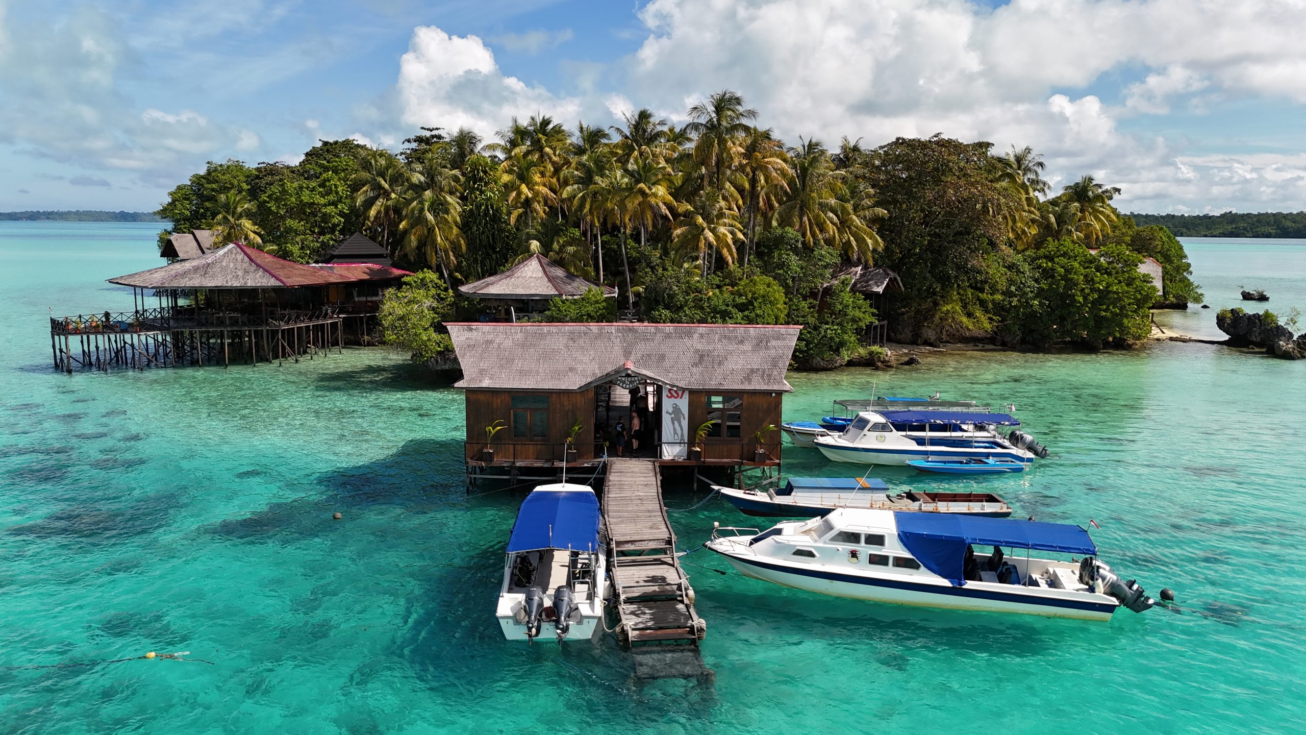 Located off the eastern coast of Borneo, in the heart of the Sulawesi Sea, the two-hectare island of Nabucco is a true paradise. It features 18 rooms spread across 12 bungalows, all built in a traditional local style. Around the island, you’ll find several small sandy beaches perfect for relaxing. However, due to the tides, swimming is sometimes only possible from the jetty – a favourite spot for snorkellers who want to explore the vibrant underwater world directly from the shore.