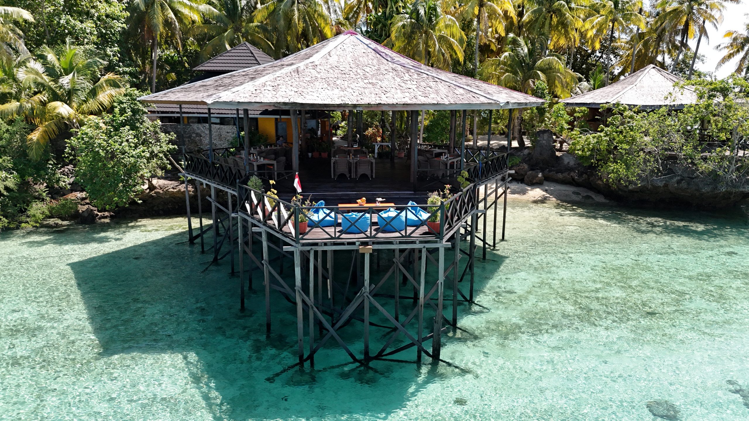 The spacious and airy restaurant is – built on stilts – directly above the sea. The exceptional location of the restaurant allows a wonderful view over the atoll. Breakfast and lunch are served “a la carte” in a cozy atmosphere. In the evening, the starry sky over Lake Sulawesi conjures up the perfect ambience for the freshly prepared 5-course menu.