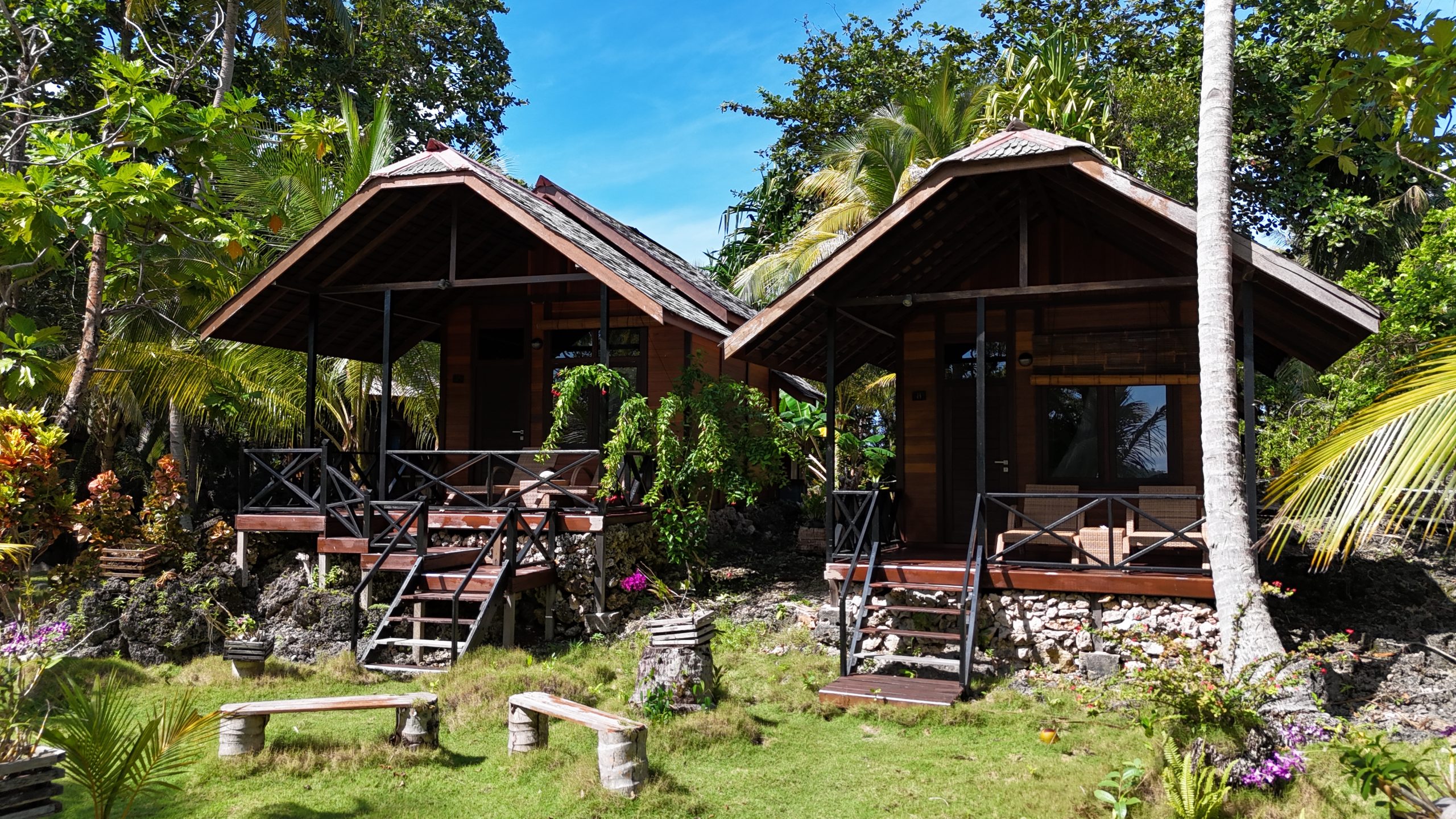 Unsere geräumigen Bungalows verteilen sich auf drei Kategorien: Suite, Seafront Room und Garden Room. Alle Unterkünfte verfügen über eine private Terrasse mit Sonnenliegen und sind mit Klimaanlage, Deckenventilator, Minibar, Moskitonetz sowie einem Badezimmer mit Dusche und WC ausgestattet. Warmwasser wird umweltfreundlich durch Solarenergie erzeugt. Die Suites bieten besonders viel Platz, ein modernes Interieur, eine eigene Kaffeemaschine sowie eine Hängematte zum Entspannen. Sowohl die Suites als auch die Seafront Rooms haben direkten Zugang zum Strand – bei Flut sogar direkt zum Meer. Die etwas zurückversetzten Garden Rooms liegen eingebettet im tropischen Garten und bieten eine ruhige, naturnahe Atmosphäre.